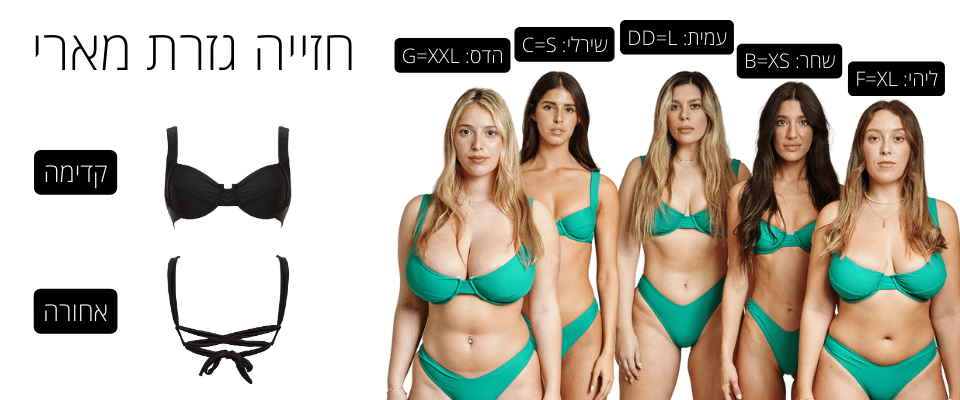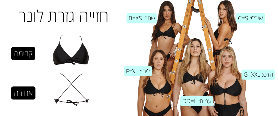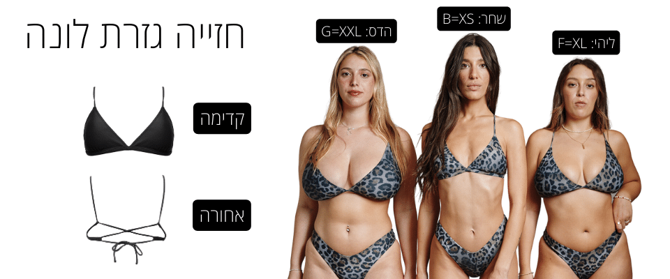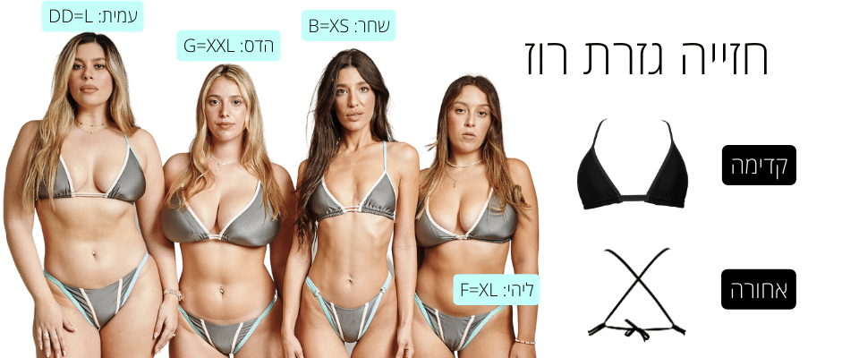 חזייה בגזרת טופ משולשים מקובעים , יוצרת מראה אוסף ומעט פחות חשוף .